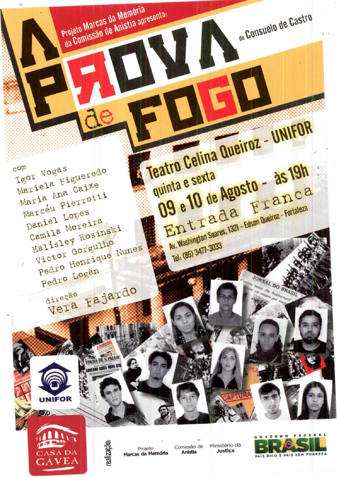 Nos próximos dias 11 e 12 de setembro, em São Paulo, ocorrerão apresentações da peça Prova de Fogo, texto inaugural da autora Consuelo de Castro Lopes.